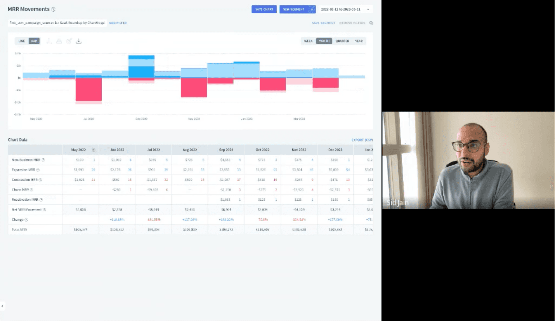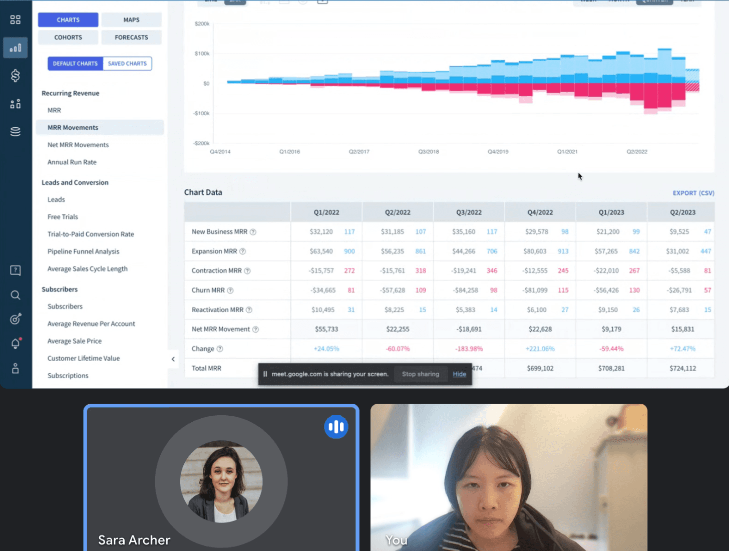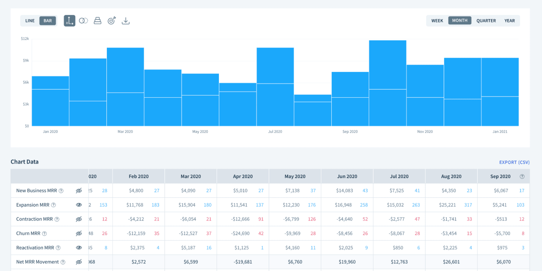 Allowing users to personalize and customize their view of MRR movements.